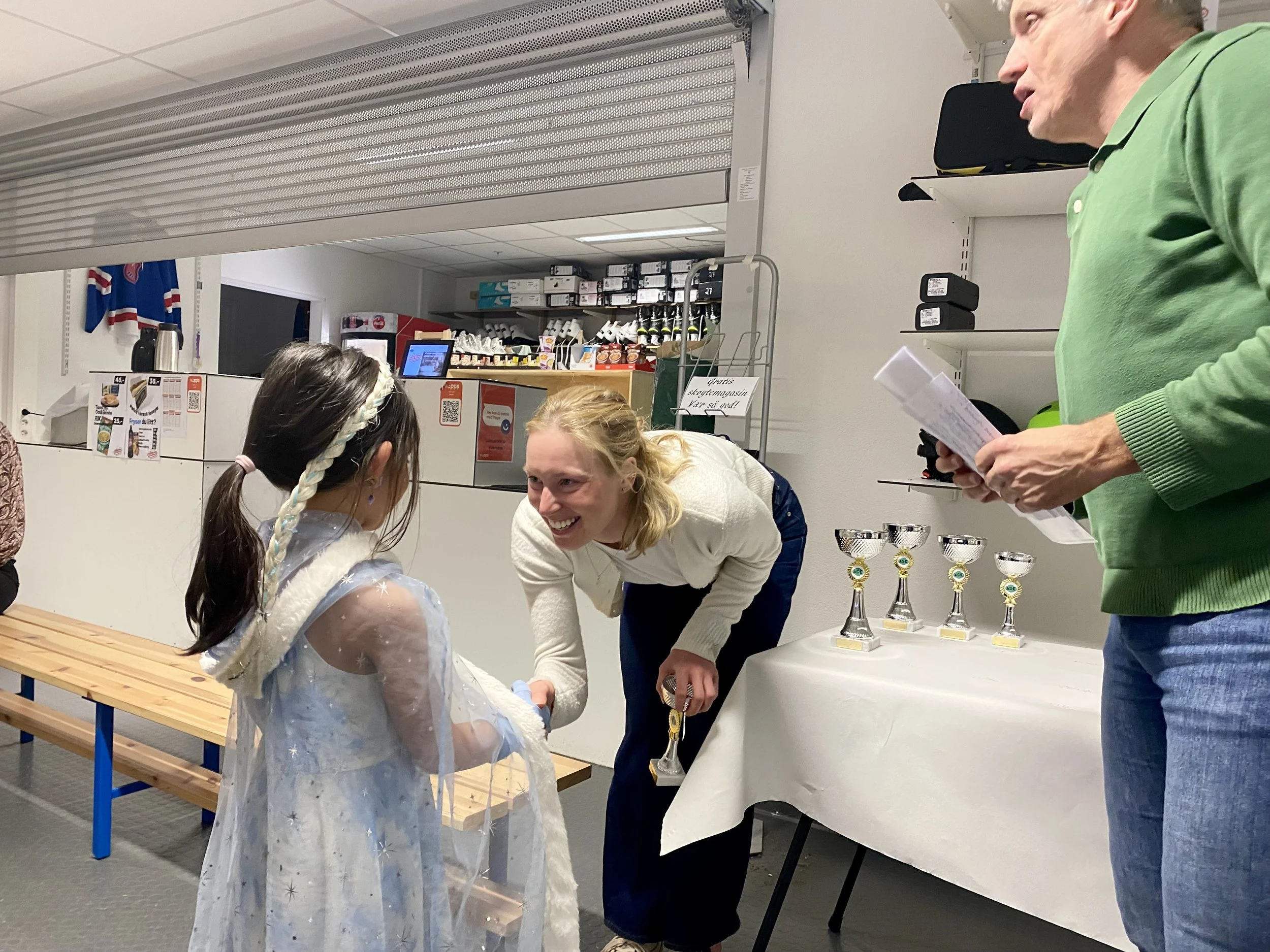 En eventyrlig sesong er tilbakelagt. Det var nesten så én et øyeblikk savnet de gamle, slitte trebordene og benkene - de som i flere tiår var vitne til skøytepraten over en kopp med kakao, buljong eller en vørterøl - etter en trening. Tenk. Vår ferske norgesmester, europamester, verdensmester og trippelt olympisk medaljevinner, Ragne Wiklund, satt selv og dinglet med beina her for “bare noen sesonger siden”, sammen med andre skøyteskolebarn. Stas var det derfor at 26-åringen hadde satt av kvelden - og sammen med kjæresten Kristian (som også er skøytetrener) kom for å dele ut premier og spise pizza og kaker med oss.
